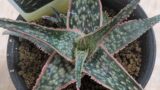 幅の細いシュッとした葉っぱに入るドットが涼やかなアロエですね。子吹きも割と旺盛なタイプかも。